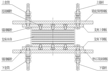 Ⅱ型——支座與墩、梁之間采用套筒連接,支座底面不設(shè)預(yù)埋鋼板,底鋼板和套筒之間采用錨固螺栓連